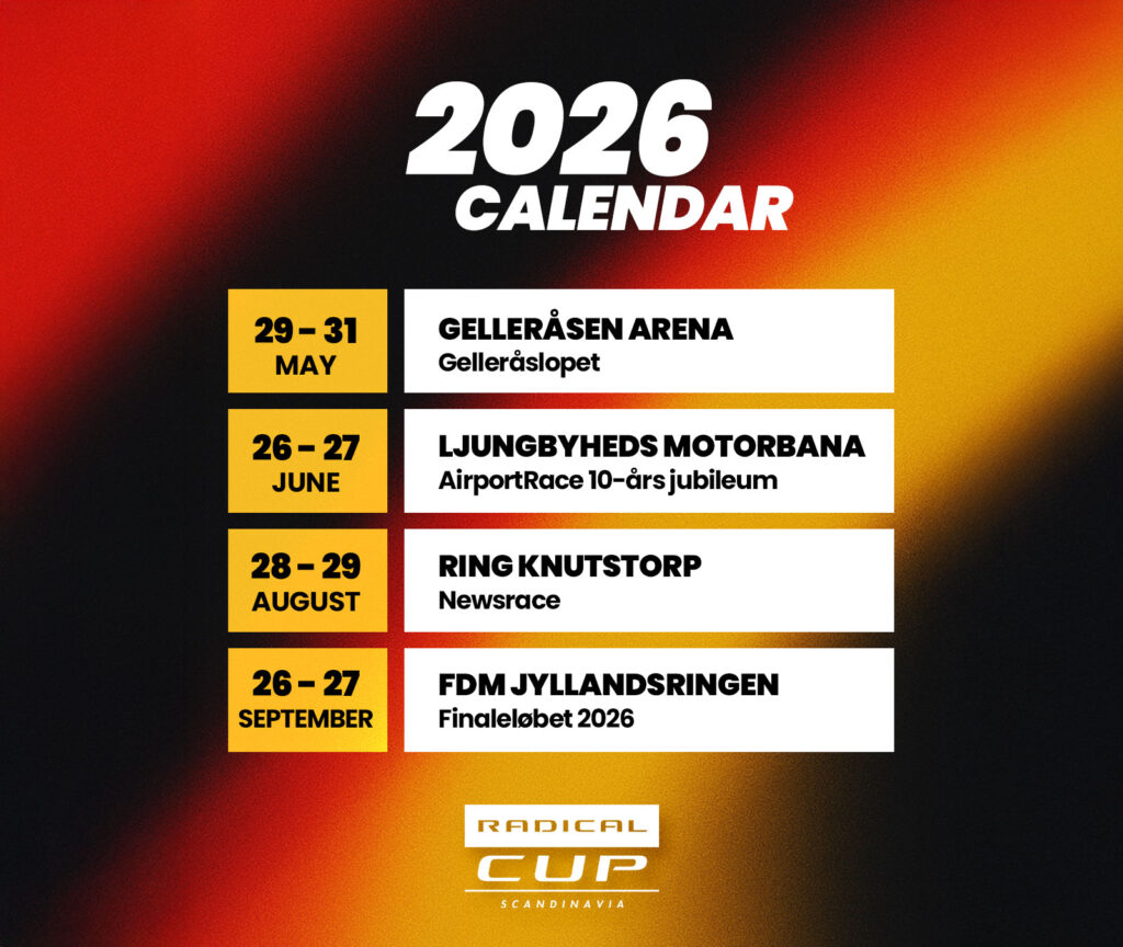 – We all know that both time away and budget are important factors in today’s world. That’s why it feels great to introduce a compact and efficient calendar, allowing us to focus on four high-quality race weekends with strong participation and great energy at every event, says Filip Svensson, Promoter of Radical Cup Scandinavia.